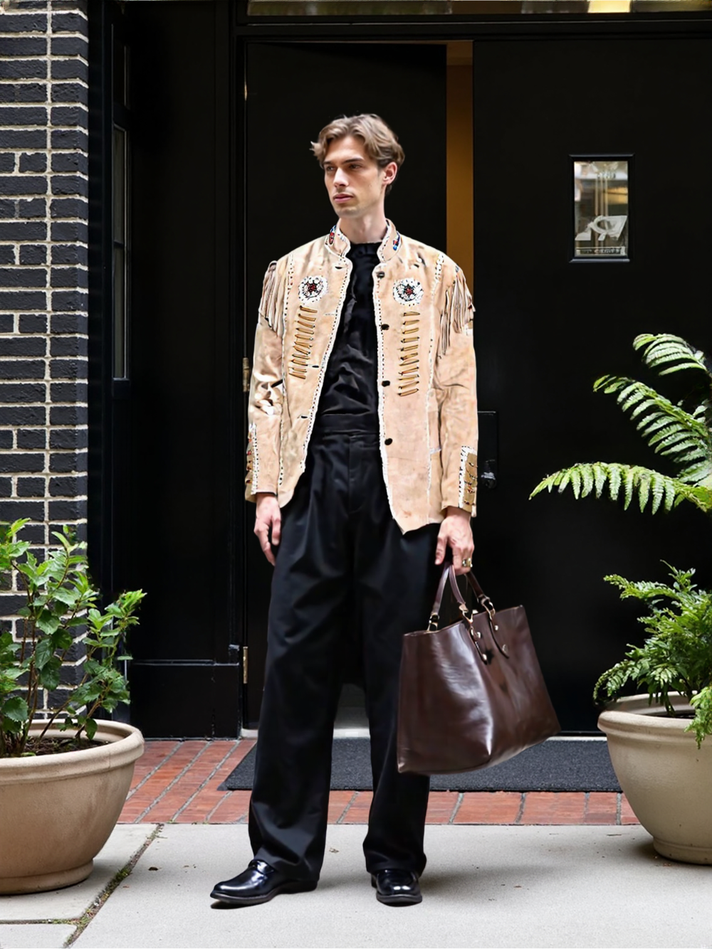 The jacket is designed with a masculine, tailored fit that flatters your frame without limiting movement. Whether you're on the bike, at the bar, or at a Western event, it gives you a strong silhouette and unbeatable style. The interior is fully lined for comfort, making it ideal for year-round wear.