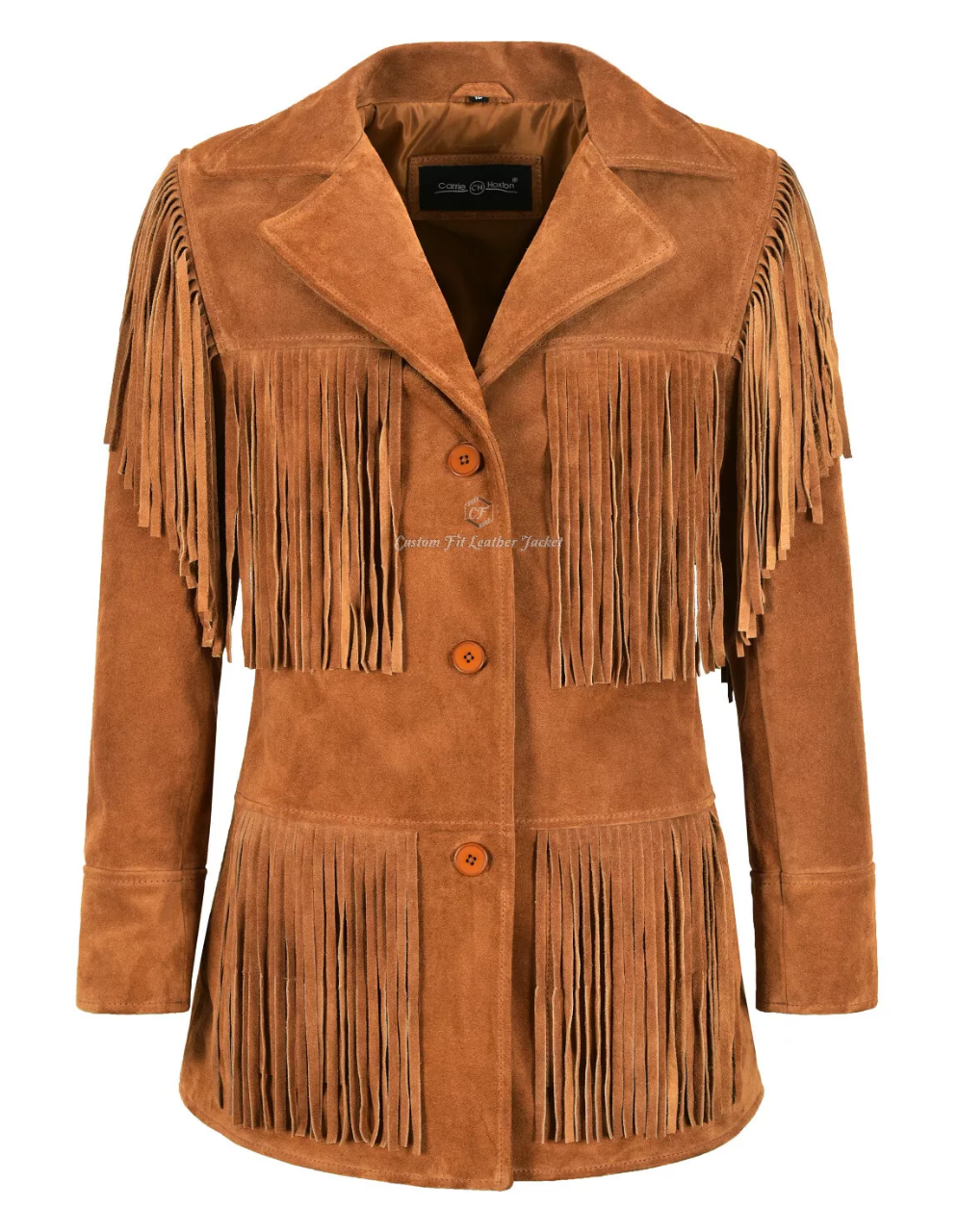 Featuring classic Western fringe detailing along the front, back, and sleeves, this jacket captures the soul of the frontier. Each fringe sways with your movement, giving the jacket a lively, free-spirited energy that turns every step into a statement. Whether you’re two-stepping at a rodeo or strolling through the city, this jacket keeps the Western legacy alive.